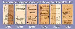 3rd and 2nd class Edmondson tickets issued between 1956 and 1983 at Gütersloh Hbf