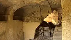 Trough tombs at Għar Għerduf catacombs. The catacombs suffered damage from quarrying in the nineteenth century.