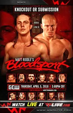 GCW Bloodsport is a professional wrestling event held by the American promotion Game Changer Wrestling (GCW).[1] This event consists of a unique ruleset compared to a traditional pro wrestling event, in that every match must end in either a knockout or submission.[2] The traditional wrestling ring is replaced by a ring canvas with no ropes or turnbuckles.