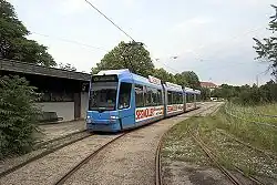 The ADtranz low floor tram was introduced in the 1990s as the world's first tram with a completely low floor design.[1] This tram was developed by MAN for the Bremen urban transport system. The prototype, tram number 3801, was first publicly introduced on 9 February 1990. From 1991 to 1993, it was being tested in many European cities. Ten German cities have purchased this type. Adtranz took over the rail division of MAN in 1990.