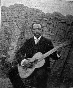 Gabino Ezeiza, nicknamed El Negro Ezeiza[2] (February 3, 1858 – October 12, 1916), was an Argentine musician. Ezeiza was one of the greatest performers in the art of the payada. He became renowned, both in his native land and in Uruguay, after a memorable encounter with Oriental payador Juan de Nava, who carried at the time a certain halo of invincibility. This celebrated contest was held in the city of Paysandú on July 23, 1884, in front of one of the largest crowds ever to gather for a payada duel (in Argentina July 23 is established as the "Day of the Payador" in commemoration of this event).[3]