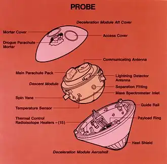 ![]() Diagram of the atmospheric entry probe's instruments and subsystems | |
