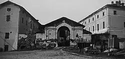 Buzzoletto Vecchio was the scene of the only tragedy that directly involved the municipality of Garbagna during the Second World War. At dawn on August 24, 1944, units of the police headquarters and the Black Brigades forcibly abducted thirteen young draft dodgers who were hiding and working in Buzzoletto, imprisoning them in the cells of the Novara Castle. As a reprisal for some sabotage actions carried out in those days by the "Loss" mobile brigade (the road and railway bridges over the Cavour Canal were blown up),[66][67] on the morning of the 26th, on the orders of the police commissioner Emilio Pasqualy and the prefect Enrico Vezzalini, the thirteen prisoners were led by the team of the commander Vincenzo Martino to the railway bridge of Vignale and there massacred by deception with bursts of machine gun fire, under the dismayed eyes of the population.[67][68] The following year, on August 26, 1945, during a commemoration ceremony, a plaque was placed at the entrance to the Buzzoletto farmhouse, commemorating what became known as the Vignale massacre. The plaque reads: To the martyrs of Vignale, innocent victims of tyrannical hatred, so that their bloody name may resound where they lived, an echo of love (the thirteen names and their respective ages at the time of death follow).[69]