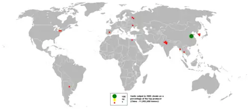 2. ^ a b c "Garlic production in 2018: Crops/World Regions/Production Quantity (from pick lists)". Food and Agriculture Organization of the United Nations, Statistics Division (FAOSTAT). 2018. Retrieved 12 November 2020.