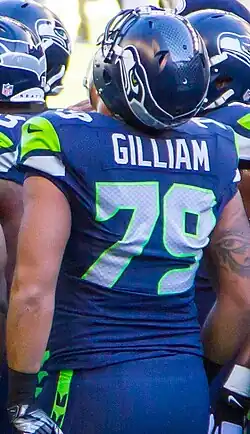 Garry Montzell Gilliam Jr. (born November 26, 1990) is an American former professional football offensive tackle who played in the National Football League (NFL) for the Seattle Seahawks and San Francisco 49ers. He was originally signed as an undrafted free agent by the Seahawks after the 2014 NFL draft. He played college football at Penn State.