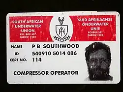 Training and certification for scuba gas blending is provided by some diver training agencies,[16] and may be required in terms of national legislation or standards.[13] ISO 13293 provides minimum training standards for gas blenders for recreational diving services at two levels. Level 1 gas blender is competent to blend nitrox and handle oxygen, air and nitrox, i.e. nitrox gas blender, and a level 2 gas blender is also competent to mix gases containing helium and argon, i.e, a trimix gas blender.[17]