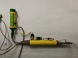 Most high-pressure breathing gas compressors are designed to accept intake gas at normal atmospheric pressure. and one of the usual components for breathing gas mixtures for diving is atmospheric air, so it is convenient to blend the gases at atmospheric pressure in an accessory to the compressor called a mixing tube or blending stick. The mixing tube is a type of static mixer, and may be constructed in a variety of ways, providing that it does not unduly restrict flow, and adequately mixes the gases before analysis and before intake into the compressor. A large range of commercially produced and home made blending tubes have been successfully used.[9]