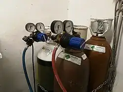 A label identifying the cylinder contents by gas type and constituent fraction may be required by law, and is useful to the user as a record of what mixture was last analysed in the cylinder.[13] Details of the format of the label and colour coding of the cylinder vary with jurisdiction.[13][9]