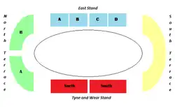 Diagram demonstrating layout of main arena at Gateshead International Stadium[41]
