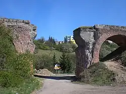 The railway from Gdańsk Wrzeszcz to Gdańsk Kokoszki (which later formed the route of the Pomeranian Metropolitan Railway) was opened on 1 May 1914 as part of the Gdańsk Wrzeszcz–Stara Piła railway. This line was destroyed in March 1945 by German forces defending the Gdańsk area.[6] The destruction of viaducts on the Gdańsk Wrzeszcz–Kiełpinek section (over Grunwaldzka Street, Wit Stwosz Street, Polanki Street, Słowacki Street, and Dolne Migowo Street) made reconstruction extremely costly.[6] Additionally, its reconstruction was deemed unfeasible due to the line's primarily local character, as it only connected Gdańsk with Kartuzy. Despite the efforts of a social committee advocating for its reconstruction, the line was never rebuilt.[6]