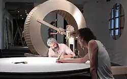 One of Gelitin's best known art projects began in March 2000, when the group removed one of the windows on the 91st floor of the former World Trade Center complex and temporarily installed a narrow balcony, while a helicopter flew around the scene, taking photographs to be later documented in their book The B-Thing.[1] The book was published in 2001 and had even by that time taken on an air of urban legend, with new copies selling for $5,000 on Amazon.com as of 2016.[1][2][3]