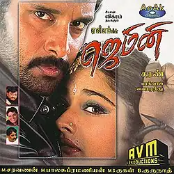 "O Podu" was a popular expression among college students in Tamil Nadu.[10] When the director wanted a catchphrase for a song, Vairamuthu suggested using the term and building on it. On the director's insistence, the term was then incorporated into and mixed with the title song, resulting in the item number "O Podu".[11][12] The song was conceived by AVM as a way of reaching out to the masses.[13] The track, picturised on Rani and Vikram and choreographed by Ashok Raja, was sung by Anuradha Sriram.[14][15][16][17] For the song, Vikram performed "savu koothu", a type of funeral dance common in Tamil Nadu.[18] The lyrics of "Deewana", sung by Sadhana Sargam, had some Hindi words as it was picturised on the heroine, a typical Marwari woman from Sowcarpet for whom Hindi comes naturally.[11] In an interview with The Hindu, Vairamuthu revealed that the track "Naattu Katta" was based on a folk song.[a] The song "Penoruthi" is inspired from "Why Me Lord" by Shaggy.[20]