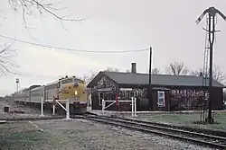 Genoa City's land was purchased from the government in 1841. James Dickerson originally platted the village, first known simply as "Genoa",[8] on May 9 and 19, 1850, and it was recorded July 12 that year. There were 23 lots and settlers paid $1.25 an acre. The first two railroad lines were built in the 1850s and 1862, respectively. In 1853, a Congregational Church moved from Bloomfield to Genoa City and built a new church. A bell was added in 1872, and a classroom in 1893. The post office was renamed "Genoa Junction" in 1874 and the village was first incorporated as such on October 15, 1901.[9] By 1880, Genoa City had about 300 residents and a post office, hotel, flour mill, grist mill, lumber yard, drug store, grocery store, hardware store, tailor, shoe maker, two carriage shops, three general stores, and two salon keepers. In 1885, Adolph Freeman platted two additions after fire destroyed many businesses on Freeman Street, which was named after him, the year prior. In the 1890s, new buildings replaced the ones lost in the fire.[10] The village's name was officially changed from Genoa Junction to Genoa City on January 24, 1924.