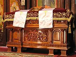 On 11 or 12 May 1941, 260–300 Serbs were herded into an Orthodox church and shot, after which it was set on fire. The idea for this massacre reportedly came from Mirko Puk, who was the Minister of Justice for the NDH.[133] On 10 May, Ivica Šarić, a specialist for such operations traveled to the town of Glina to meet with local Ustaše leadership where they drew up a list of names of all the Serbs between sixteen and sixty years of age to be arrested.[134] After much discussion, they decided that all of the arrested should be killed.[135] Many of the town's Serbs heard rumors that something bad was in store for them but the vast majority did not flee. On the night of 11 May, mass arrests of male Serbs over the age of sixteen began.[135] The Ustaše then herded the group into an Orthodox Church and demanded that they be given documents proving the Serbs had all converted to Catholicism. Serbs who did not possess conversion certificates were locked inside and massacred.[124] The church was then set on fire, leaving the bodies to burn as Ustaše stood outside to shoot any survivors attempting to escape the flames.[136]