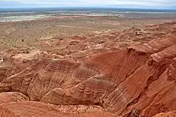 The geology of Kazakhstan includes extensive basement rocks from the Precambrian and widespread Paleozoic rocks, as well as sediments formed in rift basins during the Mesozoic.[1]