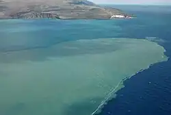 Lanzarote and Fuerteventura are separated by an 11 km-wide (7 mi), 40 m-deep (130 ft) ocean strait. Both islands are parts of a volcanic ridge called the Canary Ridge. These two islands have sometimes been a single island in the past when worldwide sea level was lower than its present level, for example during the Last Glacial Maximum about 20,000 years ago.[9][10] The single island is sometimes referred to as Mahan.[11]