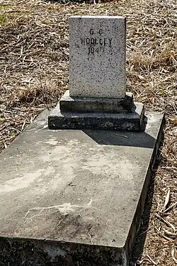 From 1942 until September 1945 Woolley was interned, along with other Allied European civilians in the Japanese internment camp at Batu Lintang, in Kuching, Sarawak. Despite his age, Woolley received severe beatings and other harsh treatment, including 30 days in the guard room on a diet of rice and water. After the war, when the guards who had mis-treated him were on trial as war criminals, Woolley refused to give evidence against them, saying to do so would only perpetuate bitterness among men.[5] He lived in England briefly after the war, but returned again to North Borneo in March 1947. He died on 6 December 1947, and was buried at the old Anglican cemetery at Jesselton, now Kota Kinabalu.[4]
