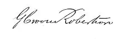 He left little published work. A comprehensive work on Hobbes was never completed, though part of the materials were used for an article in the Encyclopædia Britannica, and another portion was published as one of Blackwood's "Philosophical Classics." Together with Bain, he edited George Grote's Aristotle, and was the editor of Mind from its foundation in 1876 until 1891. Robertson had a keen interest in German philosophy, and took every opportunity to make German works on English writers known in the United Kingdom. In philosophy he was a follower of Bain and John Stuart Mill. He and his wife, the college administrator Caroline Anna Croom Robertson, were involved in social work;[4] he sat on the Committee of the National Society for Women's Suffrage, and was actively associated with its president, John Stuart Mill. He also supported the admission of women students to University College.[3]