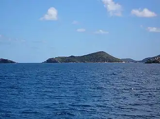 ![]() George Dog Island. Virgin Gorda is visible in the background, and West Dog (on the right) and Great Dog (on the left) can also be seen. | |