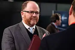 In 2014, he was appointed Parliamentary Under-Secretary of State for Life Sciences at the Department of Health and the Department for Business, Innovation and Skills.[16] The role had not previously existed in any country.[8] Freeman was nicknamed "High Tech Hezza", after Michael Heseltine whose former office he occupied while minister.[8] During this role, Freeman was criticised by Labour opponents for describing use of prosecutions to enforce the minimum wage as "the politics of envy".[17] In 2015, he asked the Medicines and Healthcare products Regulatory Agency to establish an enquiry into disabilities caused by hormone pregnancy tests.[18]