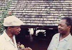 George Lilanga (right) and fellow painter Patrick Francis Imanjama outside Nyumba ya Sanaa