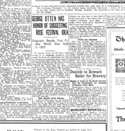 1. ^ a b c d e f g h "George Otten Has Honor of Suggesting Rose Festival Idea". The Oregon Sunday Journal. June 7, 1914. p. 4. Retrieved February 28, 2025.