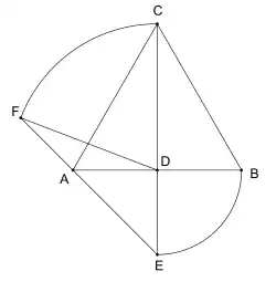 Let A and B be midpoints of the sides EF and ED of an equilateral triangle DEF. Extend AB to meet the circumcircle (of DEF) at C. Show that B divides AC according to the golden section[3]