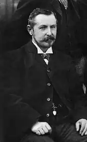 Ramsay came to join Aston Villa by chance shortly after arriving in Birmingham. One day in 1876, whilst taking a stroll in Aston Park, the 21-year-old Ramsay came across a Villa players' practice match and was asked to make up the numbers. They were amazed by his skills, they had never seen a display of close ball control before. When the game was over, the Villa players surrounded him and invited him to join the club, and very soon he became their captain.[6] Ramsay later described the newly formed club's approach to the game as 'a dash at the man and a big kick at the ball'.[7] Word spread about how fine a player Ramsay was, spectators began turning up to watch the little man nicknamed 'Scotty'. He also took charge of training which saw dramatic improvement that showed in the results, introducing what was known as the "passing game". This had become the main style of play in Scotland whereas in England most teams relied on what was known as the "dribbling game".[8]