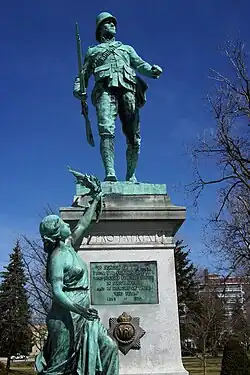 George William Hill (sculptor)'s Sherbrooke War Memorial(1926) commemorating the First World War at King Street in Sherbrooke, Quebec, Canada -