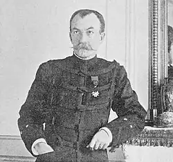 De Pellieux served in Algeria as aide to General Carteret between 1872 and 1878. In 1880 he was promoted to battalion chief. He was made an officer of the Legion of Honour on 7 February 1882.[1] He was on the staff of General François Auguste Logerot in Tunisia from 1882 to 1886. In 1890 he was promoted to colonel. He was appointed Chief of Staff of the 13th Corps in Clermont-Ferrand in 1892. In 1894 he was promoted to brigadier general. In 1897 de Pellieux was made military commander of the Seine department and provisional commander of Paris.[2]