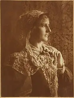 Georgie France was born in Shrewsbury, the elder daughter of William Hanmer France and Frances Emily Cave-Brown-Cave.[1] She studied at the Birmingham School of Art, while there she met Arthur Gaskin, who also studied, as well as taught, there. They married on 21 March 1894.[2] and had two daughters, Joscelyne (b. 1903) and Margaret (b. 1907).[1] Arthur and Georgie Gaskin began their married life living in Acocks Green, Birmingham, before moving to Olton, Solihull.[3] Another move, in 1924, took them to the High Street in Chipping Campden. A few years after Arthur's death in 1928, Georgie moved to West Malling, Kent where she died in 1934.[1] They are buried together, in the churchyard of St James's Church in Chipping Campden.
