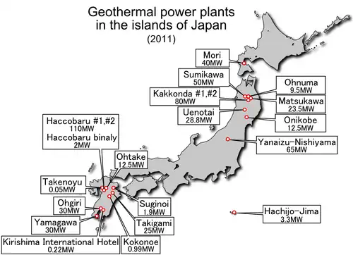 - ^ a b "Geothermal Power Development in Japan". Japan Oil, Gas and Metals National Corporation (JOGMEC). Retrieved 19 March 2025.