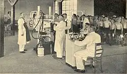 The roots of the DGP go back to the Vereinigung der Lungenheilanstaltsärzte ("Association of Tuberculosis Sanatorium Physicians") founded by, among others, Ludolph Brauer (1865–1951) in 1910. In 1920 it formed a working alliance with the Deutsche Gesellschaft der Tuberkuloseärzte ("German Society of Tuberculosis Physicians"), and in 1925 the two organizations merged to form the Deutsche Tuberkulose-Gesellschaft (DTG – "German Tuberculosis Society"). At the beginning of the twentieth century tuberculosis was the second most common cause of death in Germany. Since the nineteenth century the disease had been a regular topic in medical diagnostics and therapy. Factors such as the publicity given to tuberculosis at congresses of the German Society of Internal Medicine (DGIM), the discovery of the bacillus that caused tuberculosis (Mycobacterium tuberculosis) by Robert Koch in 1882, the popularization of the sanatorium movement in Germany by Peter Dettweiler from 1892 onwards and the foundation of the predecessor of the DZK (1895) were milestones in the fight against the disease. The key principle was not so much the promotion of specialized research activities as an interdisciplinary approach to "gather together the knowledge of tuberculosis scattered and hidden in all the different disciplines".[9] The official celebration of the founding of the DTG took place in Danzig in 1925 on the occasion of a joint meeting of the coalition of the tuberculosis sanatorium physicians and the tuberculosis public health specialists under the chairmanship of Otto Ziegler (1879–1931), medical director of the Heidehaus Sanatorium. The DPG explicitly made a point of working not only with physicians, but also with "representatives of the medical sciences (in particular universities)".[10] It hoped that greater cooperation at both the medical level – a "unanimous collaboration between care institutions, sanatoria and clinics"[11] – and at the level of political parties and organizations would send a clear message to the authorities and the general public. It also emphasized the significance of phthisiology, the forerunner of pneumology, as a separate medical speciality. Among the founders of the DTG were renowned tuberculosis specialists such as Ludolph Brauer, Otto Ziegler, Franz Redeker, Johannes Ritter, Oskar Pischinger and Ernst von Romberg and surgeons such as Ferdinand Sauerbruch. Initially, activities focused on DTG meetings, the detailed minutes ("proceedings") of which appeared in Beiträge zur Klinik der Tuberkulose ("Contributions to the Clinic for Tuberculosis") published by Ludolph Brauer.
