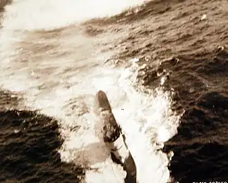 The submarine had a maximum surface speed of 17.7 knots (32.8 km/h; 20.4 mph) and a maximum submerged speed of 7.6 knots (14.1 km/h; 8.7 mph).[3] When submerged, the boat could operate for 80 nautical miles (150 km; 92 mi) at 4 knots (7.4 km/h; 4.6 mph); when surfaced, she could travel 8,500 nautical miles (15,700 km; 9,800 mi) at 10 knots (19 km/h; 12 mph). U-336 was fitted with five 53.3 cm (21 in) torpedo tubes (four fitted at the bow and one at the stern), fourteen torpedoes, one 8.8 cm (3.46 in) SK C/35 naval gun, 220 rounds, and a 2 cm (0.79 in) C/30 anti-aircraft gun. The boat had a complement of between forty-four and sixty.[3]