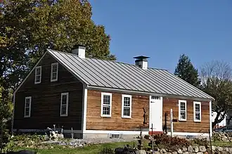 The Gershom Durgin House is located in a rural setting in central eastern Andover, on the north side of Franklin Highway (New Hampshire Route 11), just west of its junction with Agony Hill Road. It is a 1+12-story wood-frame structure, resting on a granite foundation, with a side-gable roof, two interior chimneys, and a clapboarded exterior. Its main facade is five bays wide, with a center entrance consisting of a board door fastened by metal hinges, with a four-light transom window above. The interior follows a Federal period central hall plan, a central hall flanked by parlor spaces on either side, and the kitchen in the northeast. The southwest parlor has the finest woodwork, with a Federal style fireplace surround, wall paneling, and trim. Just northeast of the building stands a 19th-century barn, which has a saltbox profile.[2]