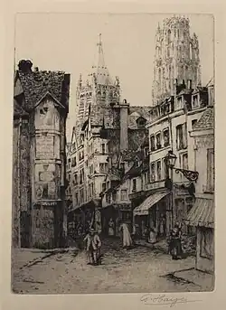 Rouen, etching by Gertrude Ellen Hayes c.1899