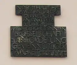 It was the preacher at St. Peter's Church, Lübeck (and later lawyer) Ludwig Suhl (1752–1819) and his friends Christian Adolph Overbeck, Johann Julius Walbaum, Anton Diedrich Gütschow, Gottlieb Nicolaus Stolterfoth, Johann Friedrich Petersen, and Nicolaus Heinrich Brehmer who, on 27 January 1789, founded this charity, first of all as a Literärische Gesellschaft ("literary society") with sidelines of scientific research and education; in 1791 the society's scope was broadened, and in 1793 it acquired the name it still bears today, although it is often abbreviated as the Gemeinnützige.