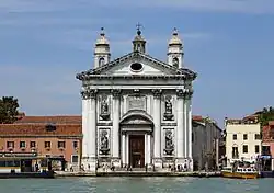The first stone was laid on 17 May 1726 in the presence of the Patriarch, Marco Gradenigo.[8] The church was consecrated on 29 September 1743 by the then Patriarch, Alvise Foscari.[9] The work was finished (with the completion of the last statue) in 1755 and appears today much as it did then.