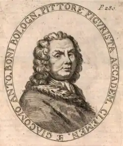 Giacomo Boni was born in Bologna on 28 April 1688. He was trained in the artistic climate of Emilia, as an apprentice to Marcantonio Franceschini and Donato Creti in Bologna and Carlo Cignani in Forlì. After visiting Genoa, Boni was influenced by the painting there, especially that of Lorenzo De Ferrari, which contributed to a greater solidity and compositional equilibrium in his own work. In Bologna he belonged to the Accademia Clementina (1720), of which he was appointed director in 1721 and 1723.