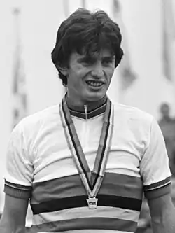 Gianni Giacomini (born 18 August 1958) is a retired Italian cyclist. In 1979 he won the amateur road race at the World Cycling Championships. Next year he competed at the 1980 Summer Olympics and finished in 5th and 18th place in the 100 km time trial and road race, respectively.[1] In 1981 he turned professional. During his short career he suffered from a health problem (narrowing of the leg artery), and after winning Giro di Basilicata in 1983, retired from cycling.[2][3]