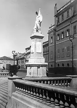 The Gibraltar War Memorial, also referred to as the British War Memorial, is located to the west of Line Wall Road in Gibraltar, the British Overseas Territory at the southern end of the Iberian Peninsula.[1][2][3] The monument, which commemorates the fallen of the First World War, was sculpted by Jose Piquet Catoli of Barcelona, Spain and was constructed of Carrara marble.[3][4] The memorial was unveiled by the Governor of Gibraltar, Sir Charles Monro, 1st Baronet (1860–1929), during a ceremony on 27 September 1923.[3][4][5] The inscription reads: "To the Memory of all Officers and Seamen of the Gibraltar Straits Patrol Who Gave Their Lives for Their King and Empire in the Great War."[6]