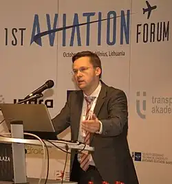 Šulija is a lecturer of legal seminars[39] by business consulting organisations and companies ("Mokesčių srautas",[40] "Teisės ir valdymo institutas"[41] etc.). He provides comments to the Lithuanian press and newspapers (Lietuvos rytas etc.).[42][43] On 25 October 2016 Šulija participated in the panel discussion of the International Aviation Forum as an aviation law expert and delivered a speech on the topic "Doing Aviation Business in Lithuania: Challenges and Pitfalls."[44]