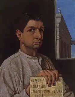 Giuseppe Maria Alberto Giorgio de Chirico (/ˈkɪrɪkoʊ/ KIRR-ik-oh; Italian: [ˈdʒordʒo de ˈkiːriko]; 10 July 1888 – 20 November 1978) was an Italian artist and writer born in Greece.[2][3] In the years before World War I, he founded the scuola metafisica art movement, which profoundly influenced the surrealists. His best-known works often feature Roman arcades, long shadows, mannequins, trains, and illogical perspective. His imagery reflects his affinity for the philosophy of Arthur Schopenhauer and of Friedrich Nietzsche, and for the mythology of his birthplace.