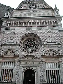 In 1470 he was commissioned by Bartolomeo Colleoni to complete his funerary chapel, the Cappella Colleoni in Bergamo, which had been begun by Guiniforte and Francesco Solari.[2] Amadeo added polychrome decoration and many sculptures in the ancient style including medallions, small columns, busts, reliefs of "Histories from the Old Testament" and "Histories of Hercules".