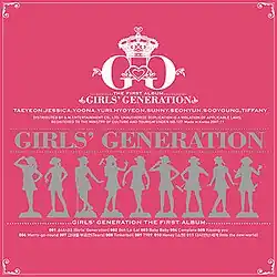 Girls' Generation (소녀시대; Sonyeo Sidae) is the debut studio album by South Korean girl group Girls' Generation, released by SM Entertainment on November 1, 2007. Recorded in Korean with minor phrases in English, Girls' Generation is a pop album with bubblegum influences. It spawned three singles: "Into the New World" in August 2007 as their debut single, the title track released simultaneously with the album, and "Kissing You" in January 2008.