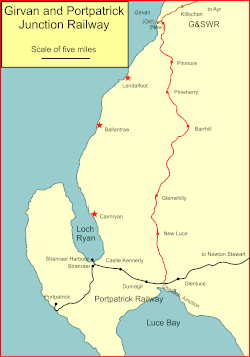 Girvan and Portpatrick Junction Railway (G&PJR) was a railway company in Scotland. It opened in 1877 between Girvan and Challoch Junction, where it joined the Portpatrick Railway, which had already reached Stranraer from Castle Douglas. Portpatrick had been an important ferry terminal for traffic to and from the north of Ireland, but its significance was waning and Stranraer assumed greater importance. The new line formed part of a route between Glasgow, Ayr and Stranraer.