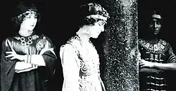 The sets and costumes were created by Duilio Cambellotti, who was Italy's most famous Art Nouveau artist and first had collaborated with Falena in 1906. Some of the inspiration for his designs came from ancient mosaics in Ravenna.[11] Some of the image compositions and actor postures were inspired by 19th-century representations of the ancient world by painters such as Lawrence Alma-Tadema, John William Godward and Dante Gabriel Rossetti.[12]