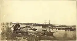 Nevertheless, in 1847 the British attempted to establish the new colony of North Australia at Port Curtis.[7] Colonel George Barney was chosen to lead this experiment in colonisation and his expedition was eventful. On 25 January 1847, the Lord Auckland, carrying 87 soldiers and convicts, arrived off the southern entrance of Port Curtis and promptly ran aground on shoals off the southern tip of Facing Island. The settlers spent seven weeks on the island before being rescued by the supply ship Thomas Lowry and delivered the intended site of settlement, the region now known as Barney Point. On 30 January at a proclamation ceremony at Settlement Point on Facing Island, Barney was sworn in as Lieutenant Governor of the (already revoked) colony of North Australia.[8] The convict settlement lasted barely two months and cost the Imperial government £15,000.[9] A change of government in Britain ordered the withdrawal of Barney and the settlers.[10]