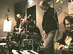 Concert at Biddle Bros Builders, Hackney, 22nd Nov 2005. Left to right: Gianluca Galetti, Emyr Tomos, Marcel Stoetzler, Matthew Karas