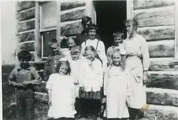 In 1915, a log church was built a mile east of the post office.[2] Work was completed that fall and on October 30, the first service took place in what became known as the Glen Leslie Presbyterian Church. It was restored as a provincial historic site and celebrated its 100th anniversary in 2015.[4]